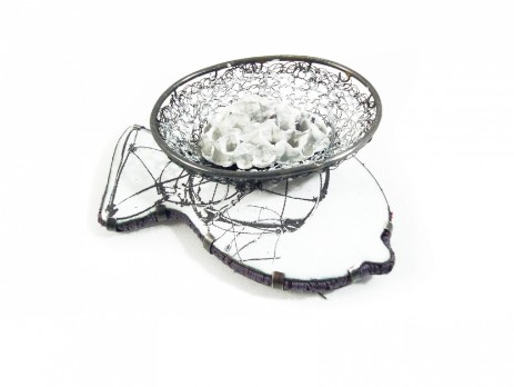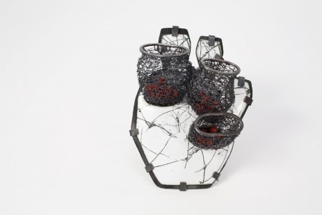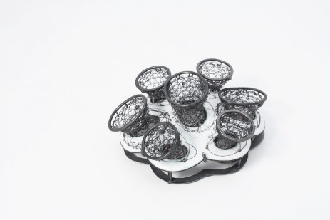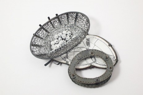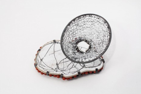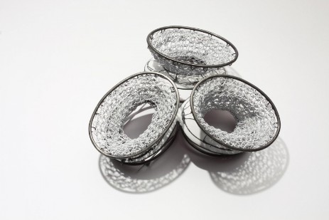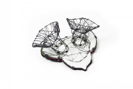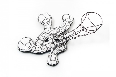 Fotografierte satelliten-, trichter- und tentakelförmige Drahtstrukturen übernehmen eine zeichenhaft symbolische Sprache. Teilweise wachsen sie aus ihrer Flächigkeit in die Dreidimensionalität um sich dem Betrachter und dem umgebenden Raum entgegenzustrecken, ihn so zu erforschen und mit ihm Verbindung aufzunehmen.