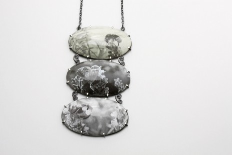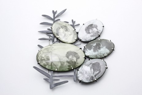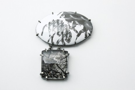 (Materialien: Silber, Kupfer, Emaille, Foto, versch. Steine)