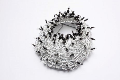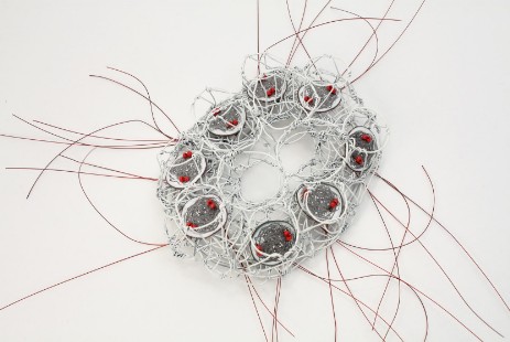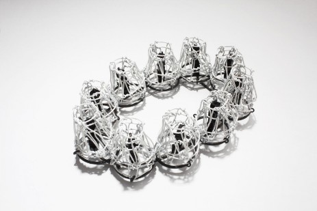 Die Anzahl der Trichter variiert zwischen 28 und 31 Stück, also der Anzahl der Tage eines Monats. Nur bei einigen Stücken ist die Form des Trichters offensichtlich, die meisten der zarten Drahtgebilde wurden flachgedrückt, wobei ein interessantes Spiel zwischen Zwei- und Dreidimensionalität entsteht. Trotz ihrer Flächigkeit wirken die Trichter durch scheinbare Perspektive räumlich. Unterstützt wird dieser Eindruck durch den Kontrast zu den oftmals eingesetzten emaillierten Elementen, in die Fotos von trichter- und tentakelförmigen Drahtstrukturen eingebrannt sind. Aus der Kombination dieser zwei- und dreidimensionalen Elemente entstehen nun in sich abgeschlossenen ‚Monate‘, die manchmal wie fremdartige Blüten, Pflanzen oder Tiere erscheinen, je nachdem wie die einzelnen Trichter (Tage) arrangiert wurden.