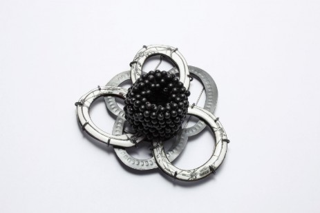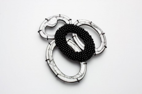 (Materialien: Silber, Kupfer, Emaille, Foto, Onyx/Spinell, Textil)